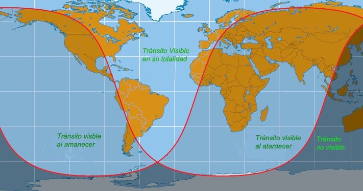 15 Mapa de visibilidad del transito de Mercurio 2016